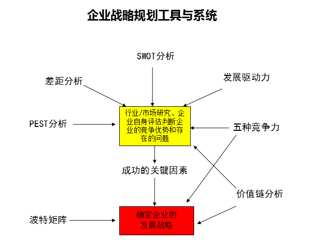 根据SWOT,确定公司的长、短期战略目标,建立目标体系和相关支撑战略(包括市场战略、产品和服务战略、财务战略、融资战略、人力资源战略)。