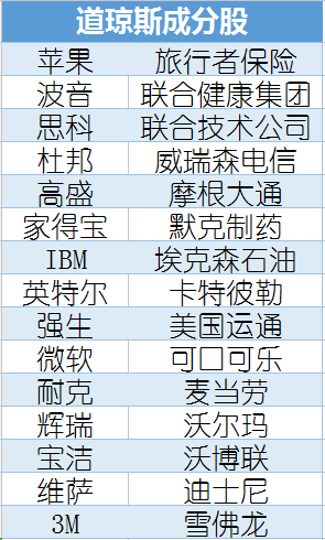 自1928年以来,仅用于计算道琼斯工业股票价格平均指数的30种工商业公司股票,已有30次更换,几乎每两年就要有一个老公司被剔除。目前,道指的30家公司为: