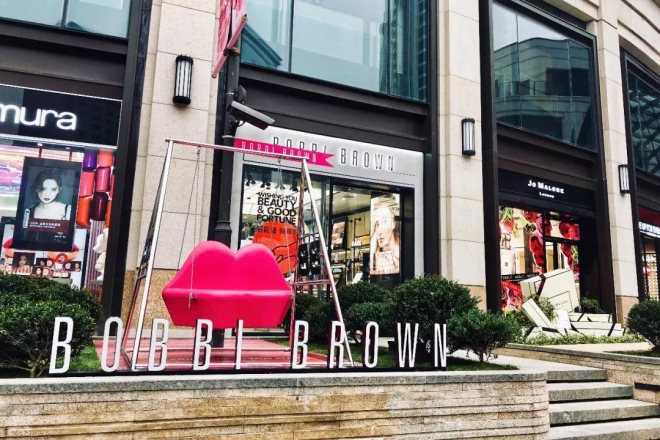 文章里说的是去年5月对外开放的兴业太古汇继今年3月打造“混嗲颜究所”美妆体验项目之后,近期又搞了一波让人眼前一亮的场景。作者发现,最近几个月不少品牌如BOBBI BROWN、Jo Malone、philosophy、SPACE NK、Kiehl's等都在外场品牌专卖店前的绿植公区逐步搭建起了品牌专属的美陈布置。